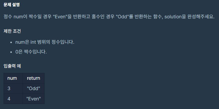짝수와 홀수 -> 2로 나눈 나머지가 0인지 묻는 문제