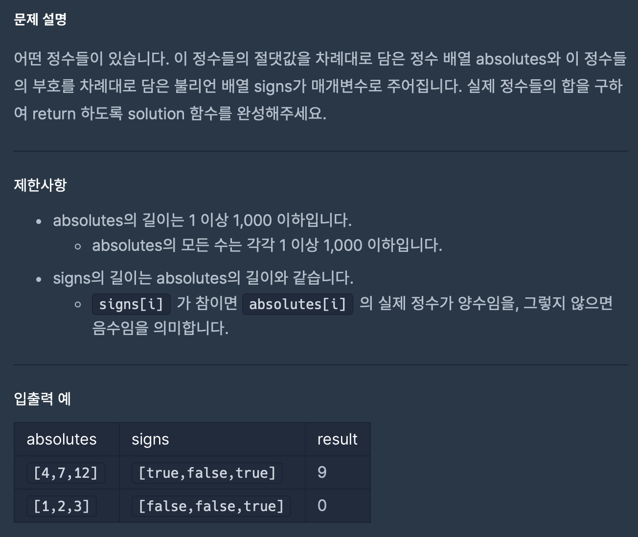 function solution(absolutes, signs) {