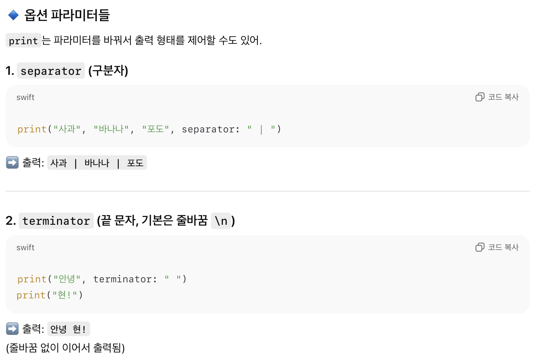 다양한 print 사용 예시들...