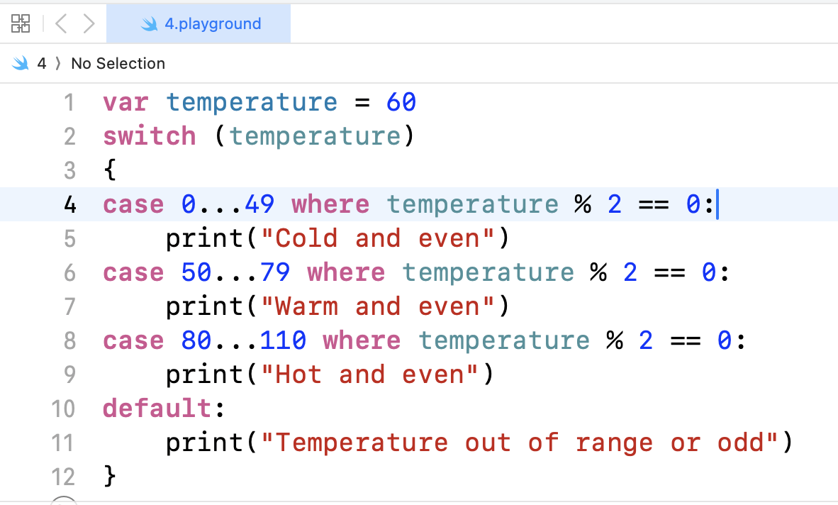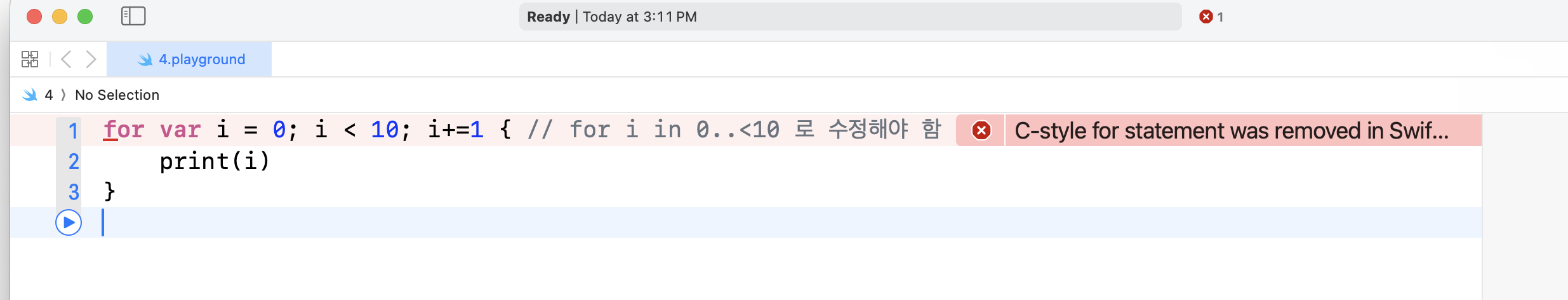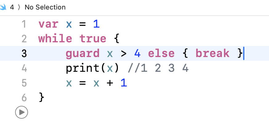 - swift는 if문이 한 줄이라도 반드시 중괄호를 넣어줘야 한다. (break 양 옆을 중괄호로 감싸자.)