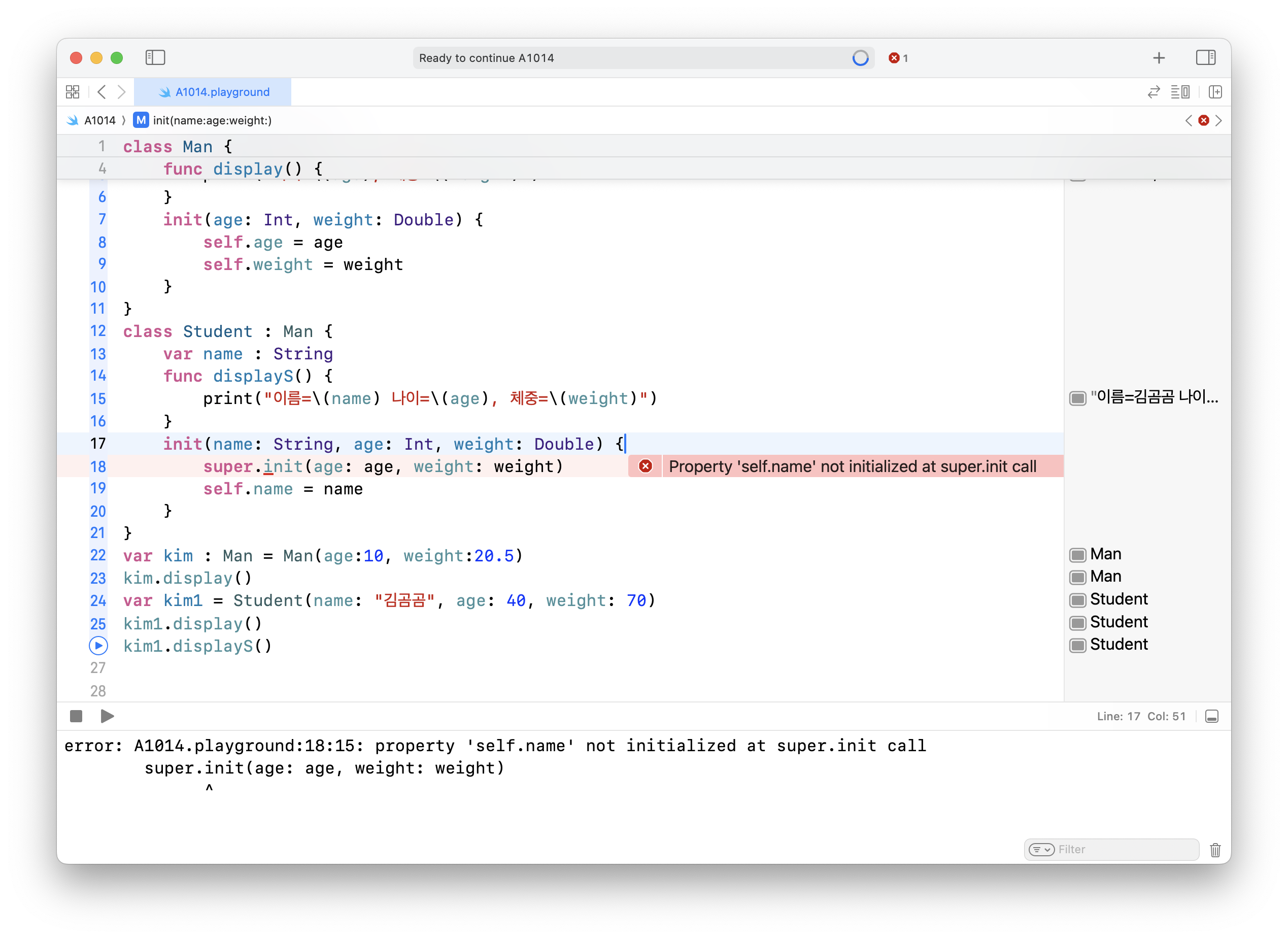 - 반드시 자식의 프로퍼티를 먼저 초기화 해야한다.